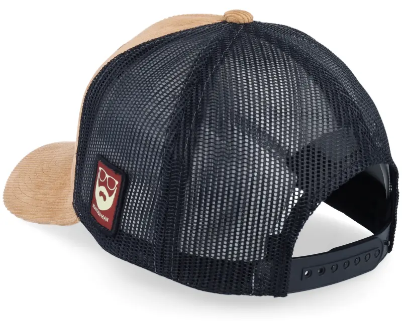 Bearded Man Cap Man Modern Cord Caramel/Black A-frame Trucker