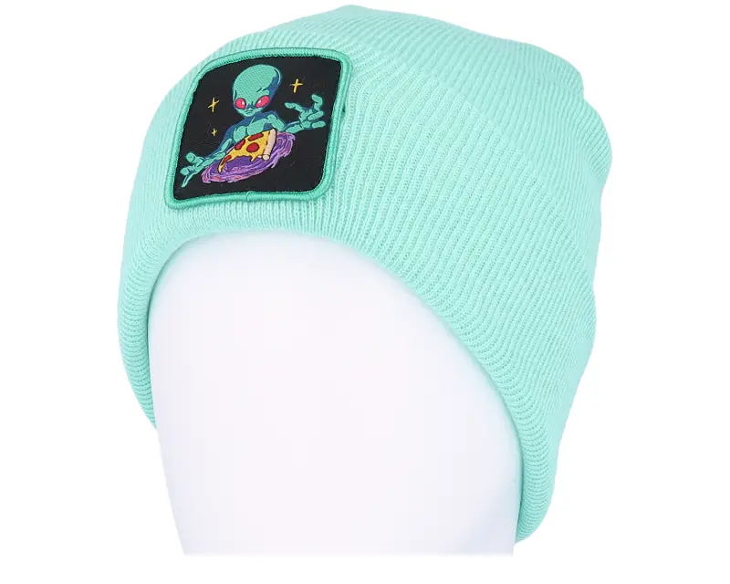 Iconic Alien Space Pizza Patch Mint Cuff Beanie