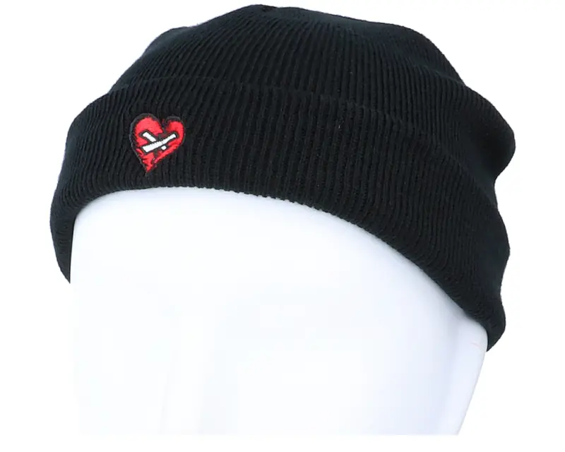 Iconic Tiny Broken Mended Heart Black Short Beanie