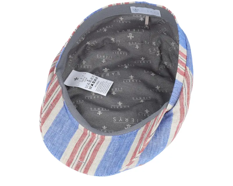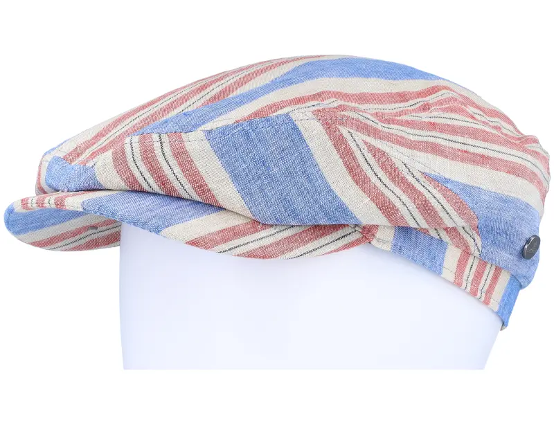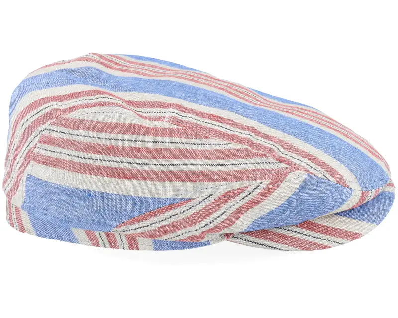 Lierys Driver Cap Linen Blue/Red Stripe Flat Cap